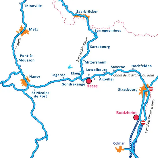 Bootstour durch das Elsass: Hesse - Strasbourg und zurück (1 Woche)